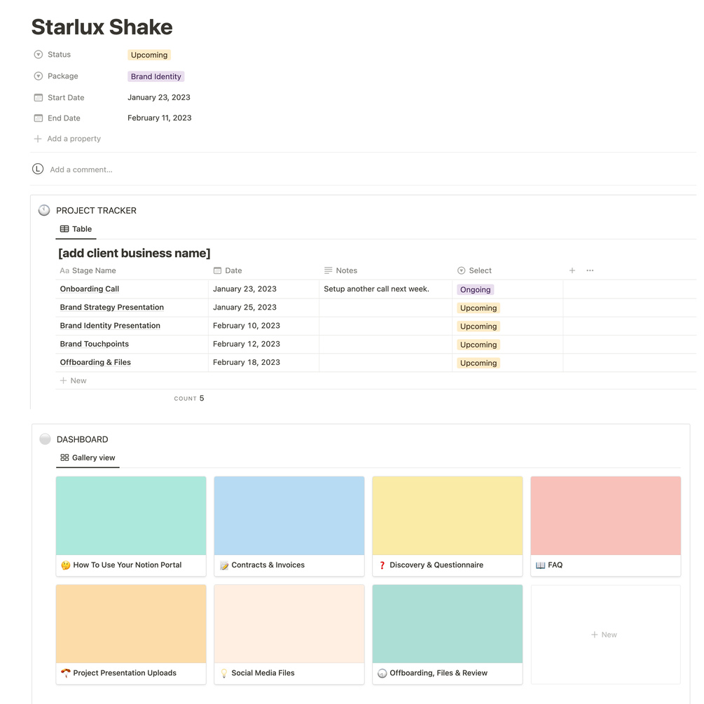 This Notion Project Tracker and Client Portal Management System is a powerful tool for graphics artists looking to streamline their business operations and increase productivity. This software offers a range of features designed to help artists manage their projects, meet deadlines, and communicate effectively with clients.